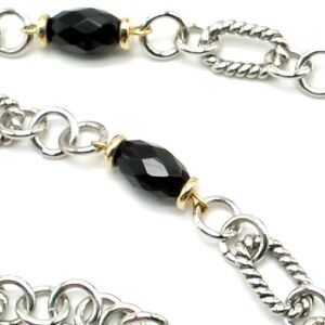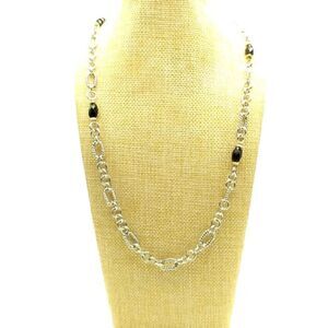 Black Acrylic Faceted Beaded Silver-tone Figaro Chain Necklace
