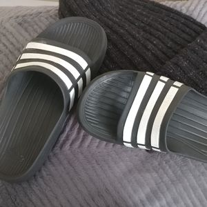 My favorite pair of Adidas slides, signs of use, can be cleaned before shipping or left alone 😉👌