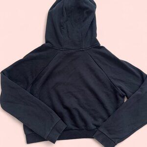 black cropped hoodie, oversized fit, athletic wear, sporty style, casual streetwear, logo hoodie, black sweater, relaxed fit, lounge outfit, athletic casual