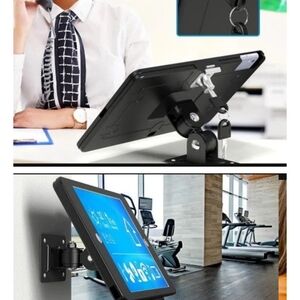 Black adjustable tablet mount with versatile viewing angles. Ideal for gym or home use.