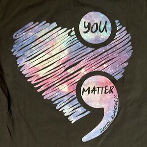 Stylish black short sleeve unisex t shirt featuring a vibrant “You Matter” . Suicide Awareness