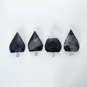 Please kindly note that you will receive one black agate flame freeform. These crystals are not polished. Each stone is unique and one heart will be picked intuitively for you! Since all crystals are made of natural material, please allow for some imperfections as they add to the character of the crystal! All crystals are cleansed before shipping by either sound bath or smoke.