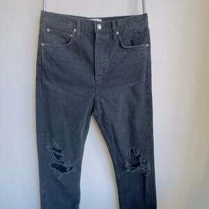 Black Agolde 90s Jeans Straight Loose Baggy Grunge Distressed High Rise Denim 27