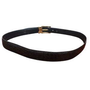 Black Alligator Leather with Gold-tone Buckle Belt Men Italy Size 38/95