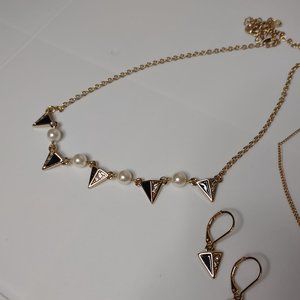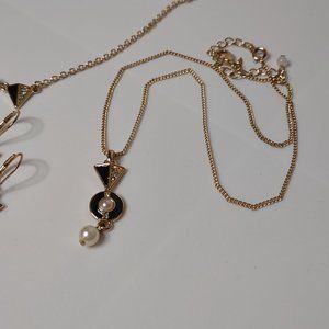 Black And Gold Tone Necklace And Earring Set