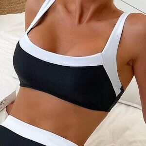 Black And White Boho Women's Beach Color Block Bikini Set Two Piece Swimsuit
