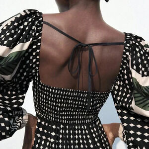Black And White Boho Women's Floral Print Twist Hollow Out Casual Short Dress