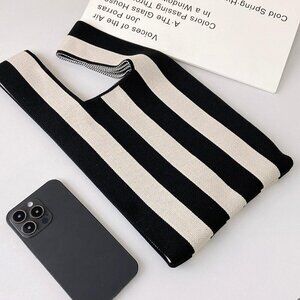 Black And White Casual Women's Handheld Crochet Woven Bag Stripe Pattern