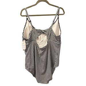 Black And White Gingham One Piece Swimsuit Plus Size Twist Front Cut OutSz 3X