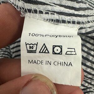 Black And White Striped ePretty Ruffle Button Up Blouse Size M Lightweight Chic