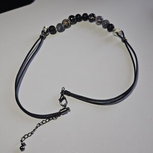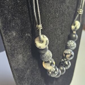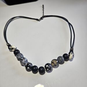 Black And White Themed Semiprecious Beaded Necklace Cord Chain 19-22"