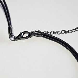 This black and white themed semiprecious beaded necklace features a cord chain that measures 19-22 inches in length. The necklace is designed with a black and white color palette and a beaded style, giving it a classic and elegant look. Perfect for adding a touch of sophistication to any outfit, this necklace is a versatile piece that can be worn for various occasions. Made with high-quality materials, this necklace is sure to make a statement and elevate your wardrobe.