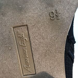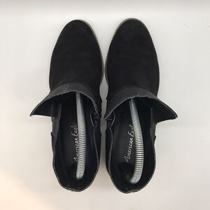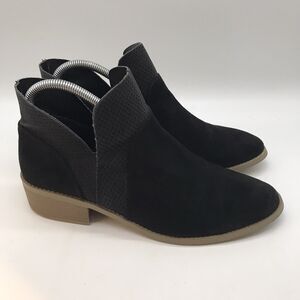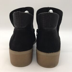 Stylish ankle boots with a sleek black design. Features textured accents. Comfortable and versatile for any occasion. Size 9.5 women’s. Good condition.