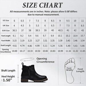Stay chic, day or night! These boots are just what you need to dress up your look. Classic round toe ladies ankle boots with side zipper and decorative buckle. Booties have durable non-slip rubber soles to ensure comfortable walking.