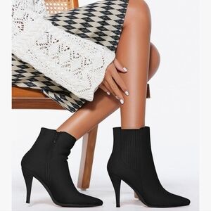 【FASHION DESIGN】These ankle boots for women feature in stylish pointed toe and stiletto high heel. Perfect for elongating your legs and showing your temperament. Booties for women also features a side zipper so the short boots for women are super easy to slip on and off