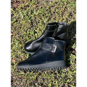 Black Ankle Boots Side Zipper Fleece Lined Size 8
