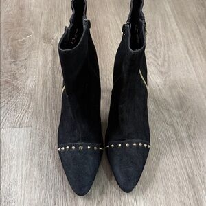 Step out in style with these chic black ankle boots. Featuring elegant gold accents, they add a touch of sophistication to any outfit.
