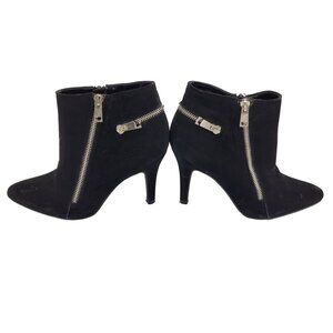 Elevate your style with these black ankle boots featuring multiple silver-tone zippers. Designed by ...me Too, the Eden boots in size 7M/37 blend fashion and function seamlessly, made with a man-made upper and sole.