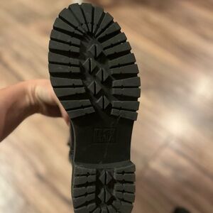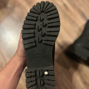 Stylish black ankle boots featuring white stitching. Perfect for any occasion.