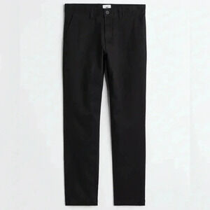 Elevate your work wardrobe with these black ankle length straight leg stretch pants from H&M. The high waist and tapered leg style provide a modern and sleek look, while the solid pattern and flat front give them versatility for any casual occasion. The pants are made from a comfortable polyester blend material with stretch features, ensuring they are perfect for all seasons.