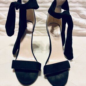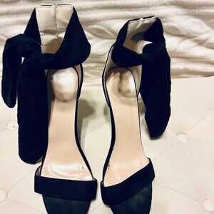 These sexy stilettos are perfect for date night or a night out with the girls! They are flirty and the ankle wrap gives them a feminine touch. The heel is approximately 4 - 4.25 inches tall with a clear end cap. The material is suede and is soft to the touch. They are new and have only been worn once. Get these gorgeous shoes before they are gone!