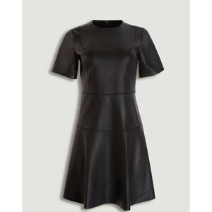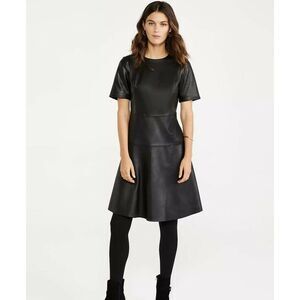 Black Ann Taylor Faux Leather Fit-and-Flare Short Sleeve Dress (NWT)