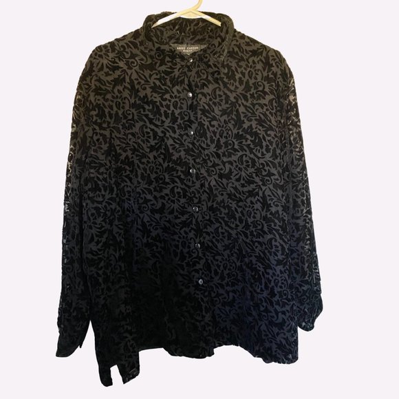 Black Anne Carson Velvet Button-Up Blouse, Size 2X.