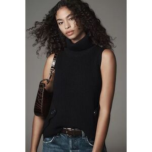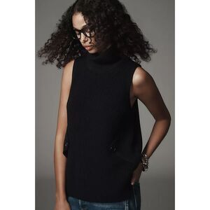 Black Anthropologie Ribbed Knit Side Button Sleeveless Turtleneck Sweater (NWT)