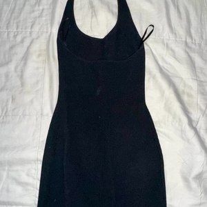 Black ribbed backless mini dress in XS. Excellent condition and slimming.