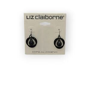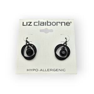 Black Art Deco Circle Drop Earrings – Liz Claiborne Hypoallergenic Dangle Earrings