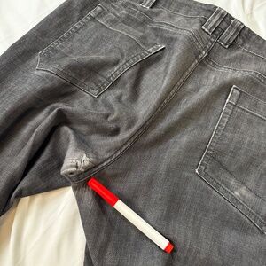 Great jeans. Used condition. Broken-in and ready for you. Some flaws as noted in the photos.