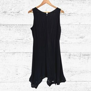 This chic black mini dress boasts an asymmetrical cut out design, ideal for a night out or cocktail event. The sleeveless style and scoop neckline offer a sophisticated touch, ensuring you stand out in any evening setting.
