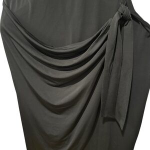 This elegant black sheath dress features a sleeveless design and a scoop neckline, perfect for cocktail events. Its asymmetrical cut adds a modern twist to the classic silhouette, while the form-fitting material ensures a flattering fit. Ideal for a night out, this dress combines sophistication with contemporary style.