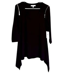 Elevate your style with this chic black asymmetrical top featuring elegant zip details. Perfect for any occasion.
