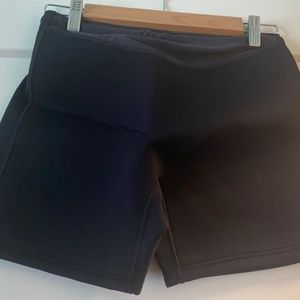 These black athletic shorts are designed for optimal comfort and performance, featuring a smooth synthetic fabric and a flexible elastic waistband. Ideal for workouts or casual activities, they offer a clean and simple design that hits just above the knee.