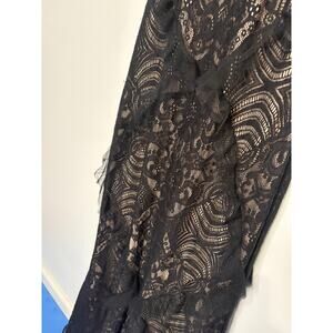 Black BCBG Max Azria Lace Full-Length Stretch Dress Gown with Nude Lining XS