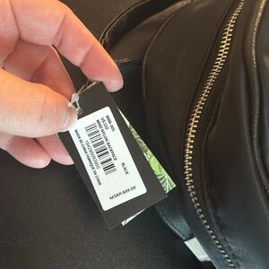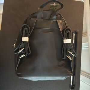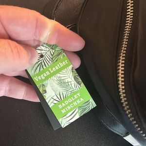 Sleek and stylish black backpack by Badgley Mischa. Perfect for everyday use with a spacious main compartment and a front zip pocket for easy access.