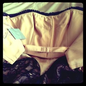 This is a beautiful Size 6 new with tags Badgley Mischka cocktail dress. It features a beautiful champagne lining and a built in bustier bra. Lace Verlag with sequins . Tulle waist.