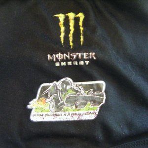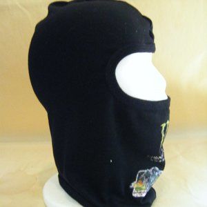 Black balaclava hood with an energy drink and Indoor kart racing logos. Cotton/poly blend. One size fits most. Price firm. Thanks for shopping!
