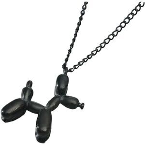 Stainless Steel Black Balloon Dog Shape Pendant Necklace