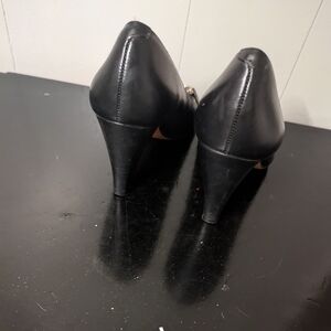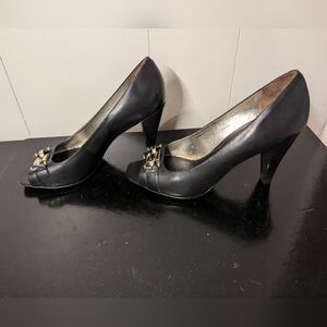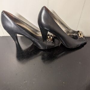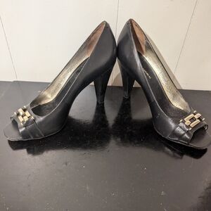 Black Banana Republic Peeptoe Heels with Gold Buckle Size 7