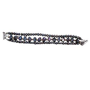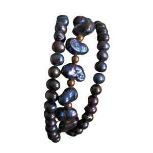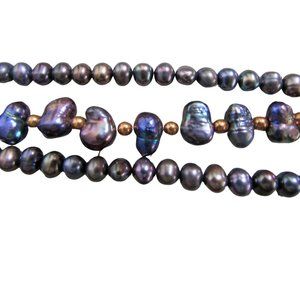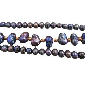 Three strand baroque freshwater pearl bracelet with small copper beads. Length 7.5"
