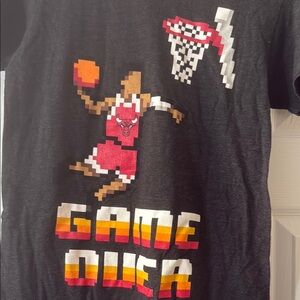 Enjoy a fun and sporty look with this black basketball graphic t-shirt. Perfect for game nights or casual outings.