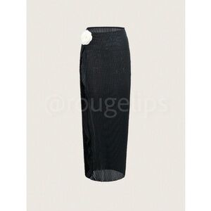 Black Beach Sarong Skirt with Flower Detail Stretchy Semi-Sheer