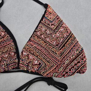Black Bead Embroidered Halter Tie Active Sports Bikini Boho Beach Top S Small