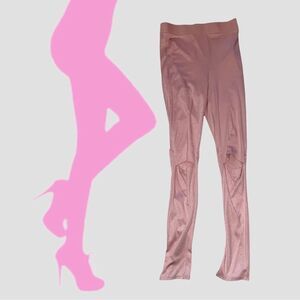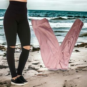 Black Bead Pastel Pink Cutout Knees High Waisted Activewear Yoga Leggings L