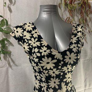 Black Bead mini dress with floral pattern and spandex fabrics which adjust to your body shape.