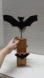 Features one large bat attached to a tall wooden pedestal plus two smaller dangling bats attached with twine. Gorgeous art piece perfect for those who want more minimalistic Halloween decor!