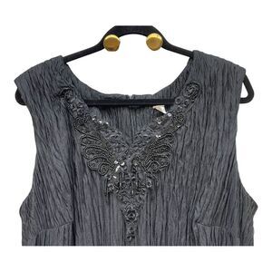 Black Beaded Detail Wavy Sleeveless Maxi Dress Size XL Cocktail Party