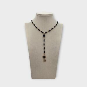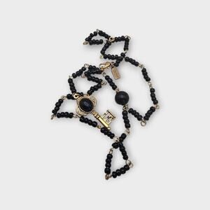 Black Beaded Y-Drop Key Necklace 1928 Brand Gold Vintage Gothic Revival Style